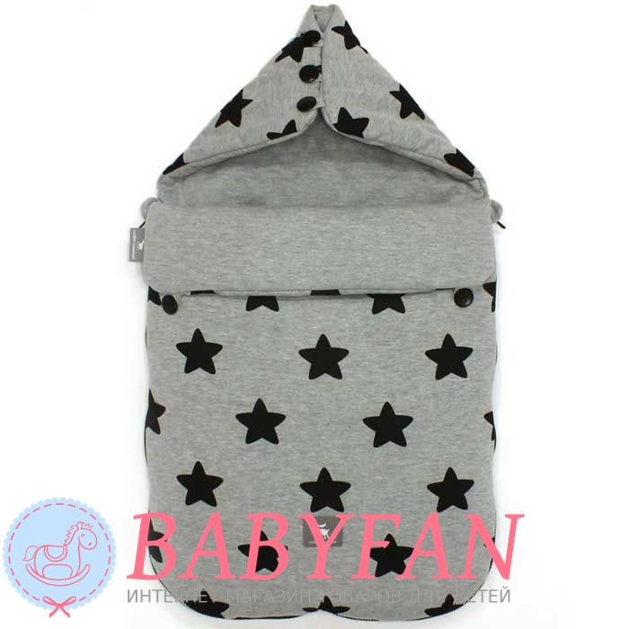 - гудзики у верхній частині конверта дозволяють створити каптур, який щільно облягає голову дитини, перешкоджаючи проникненню холодного вітру всередину спального мішка;