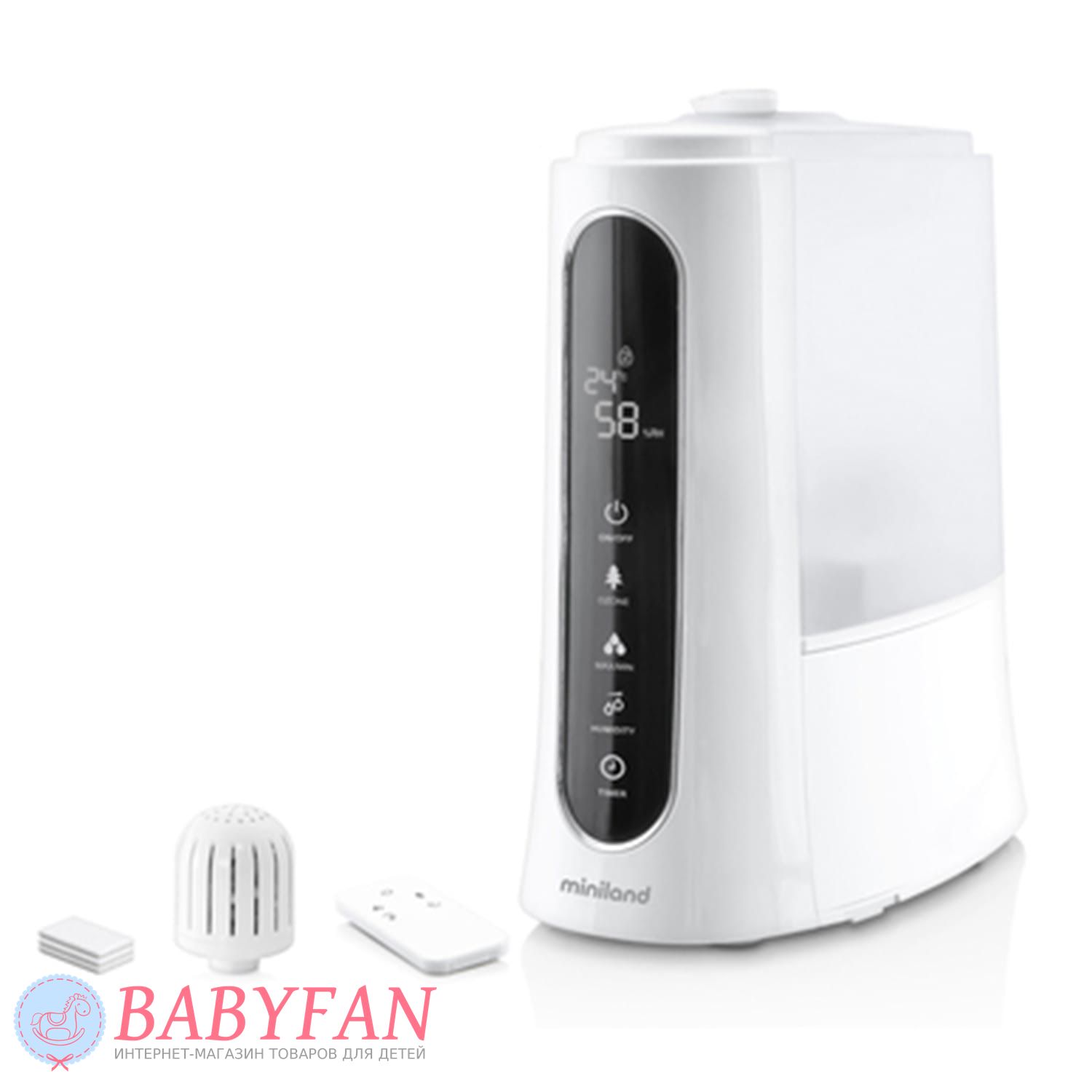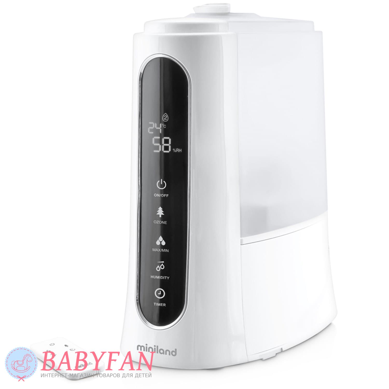 Зволожувач повітря з озонатором Miniland Humitouch Pure – компактний прилад, що забезпечує зволоження та озонування повітря в кімнаті. Фахівці рекомендують встановлювати зволожувач у дитячій кімнаті, щоб покращувати мікроклімат та забезпечувати очищення повітря від шкідливих мікроорганізмів та бактерій. Завдяки роботі зволожувача повітря з озонатором покращуються умови для сну дитини, знижується ризик розвитку у дитини алергії та виникнення проблем із дихальними шляхами.