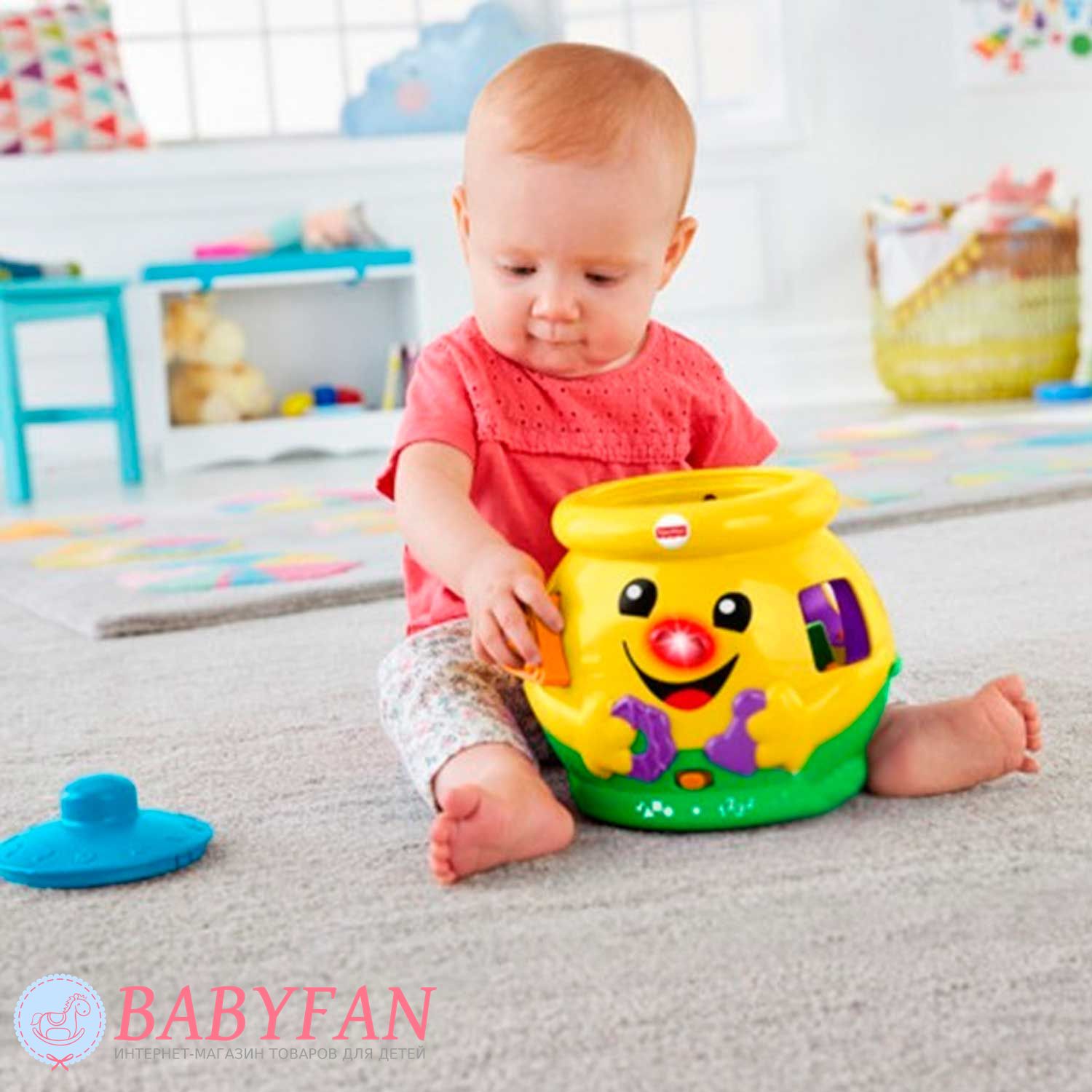Чарівний горщик Fisher-Price (рус.яз) К2831 - дивовижна розвиваюча іграшка для дітей. Іграшка має чудове веселе личко, носик-кнопочку та 5 отворів різних геометричних форм. Щоразу, коли малюк натискає на носик, чарівний горщик Fisher-price підсвічується миготливою лампочкою і видає якусь фразу або кумедний звук.