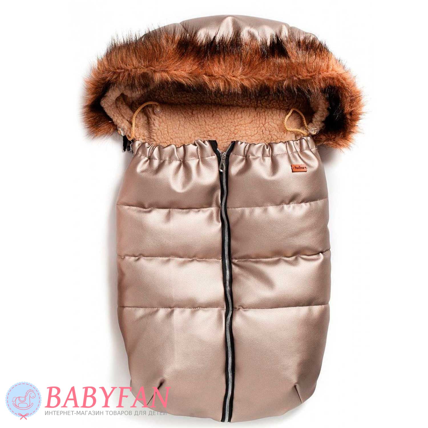 Twins Voyage Eco – зимовий конверт на овчині для дітей віком від 6 місяців. Водовідштовхувальна зовнішня тканина покрита екошкірою. М'який дихаючий наповнювач пропускає повітря і відводить зайве тепло, запобігаючи перегріву. Внутрішня частина овчини, яка відмінно зберігає тепло. Об'ємний каптур зі знімним хутряним узліском надійно захищає від вітру. Завдяки відразу 3 застібкам на блискавці конверт повністю розкривається.